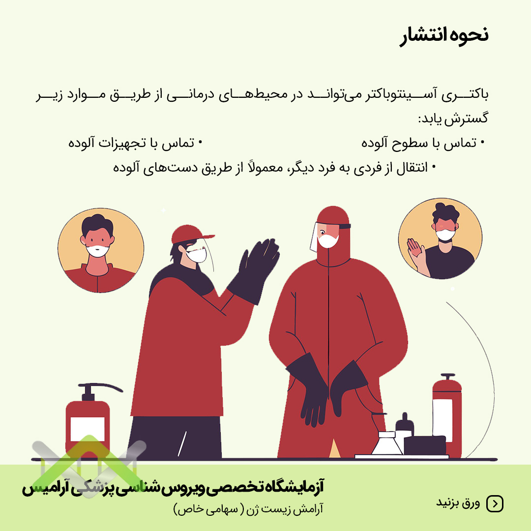باکتری آسینتوباکتر میتواند در محیط های درمانی از طریق موارد زیر گسترش یابد: