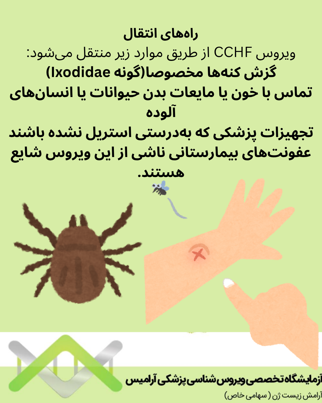 ویروس CCHF از طریق موارد زیر منتقل میشود:
