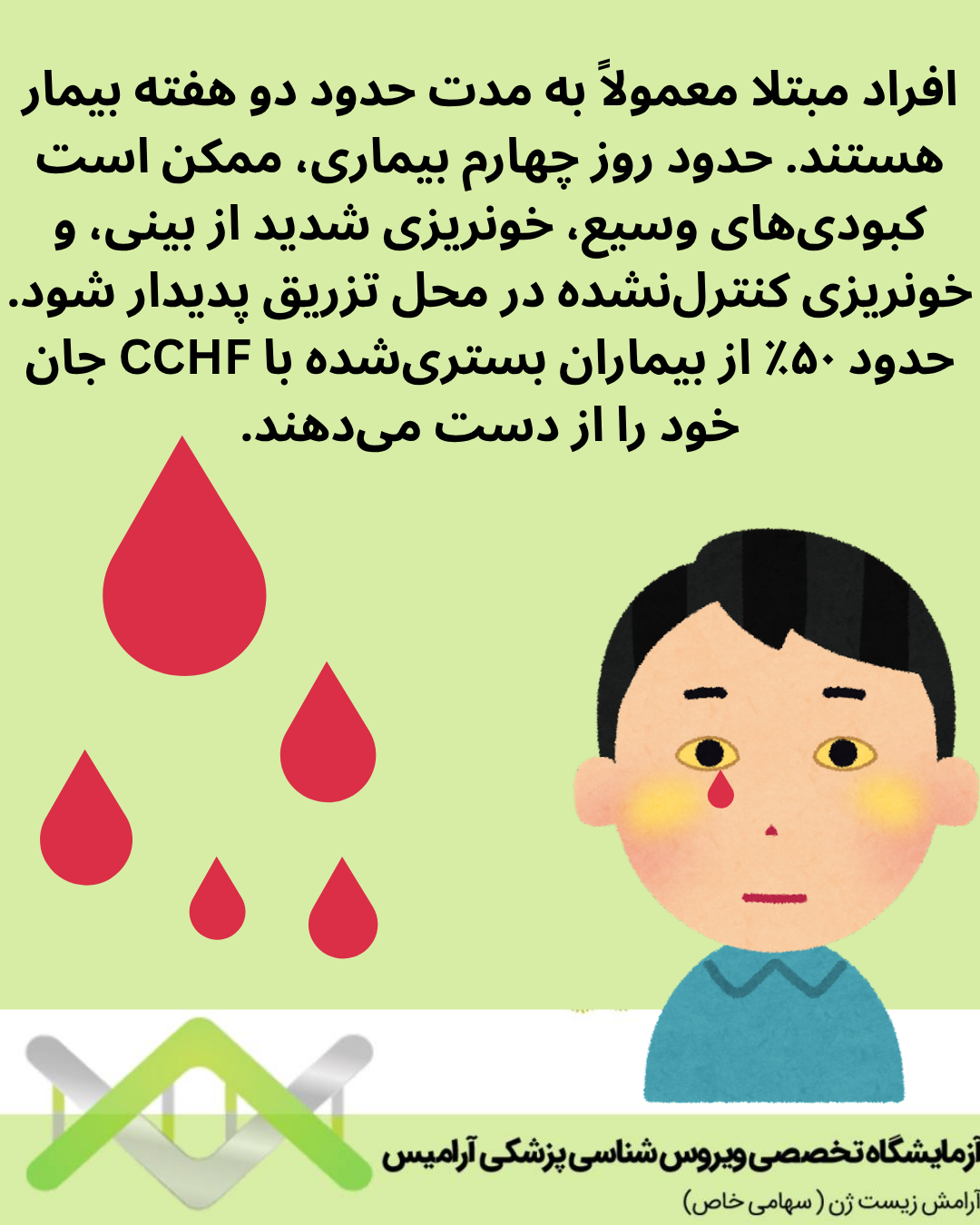 حدود ۵۰% از بیماران بستری شده با CCHF جان خود را از دست میدهند.