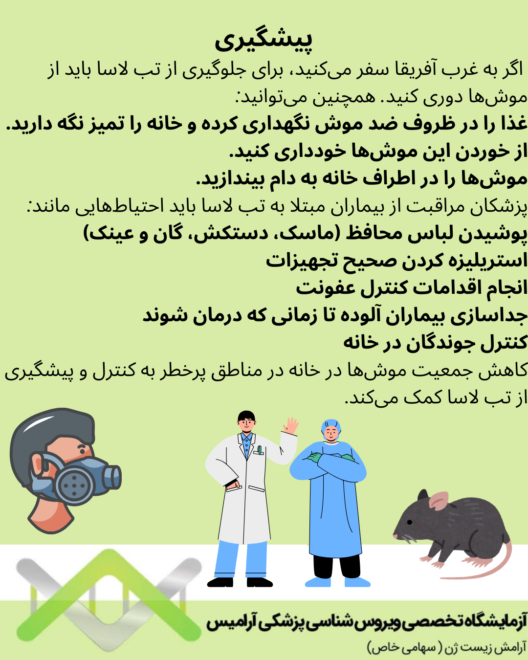 پزشکان مراقبت از بیماران مبتلا به تب لاسا باید احتیاط هایی مانند: