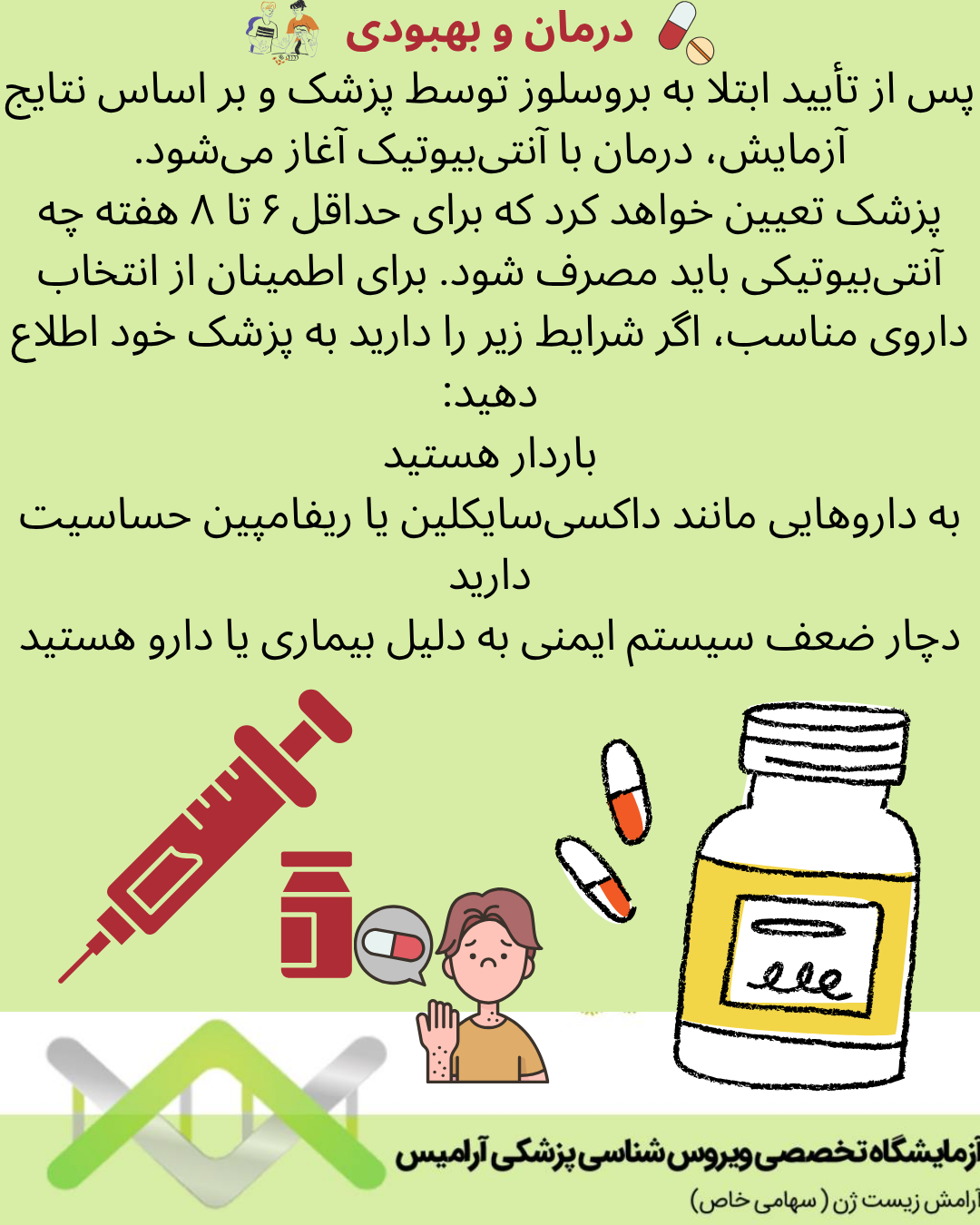 پزشک تعیین خواهد کرد که برای حداقل ۶ تا ۸ هفته چه آنتی بیوتیکی باید مصرف شود برای اطمینان از انتخاب داروی مناسب اگر شرایط زیر را دارید به پزشک خود اطلاع دهید: