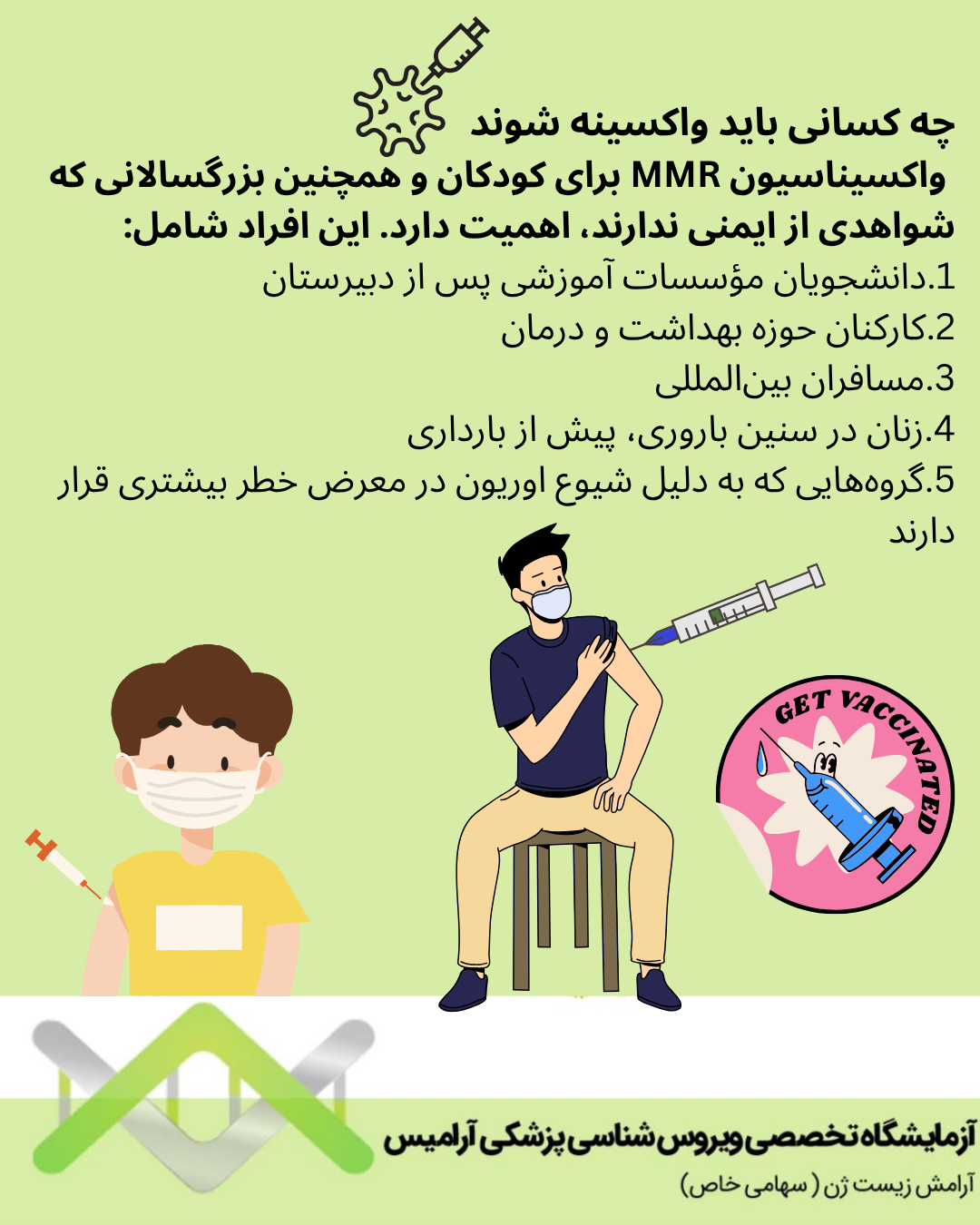 واکسیناسیون MMR برای کودکان و همچنین بزرگسالانی که شواهدی از ایمنی ندارند، اهمیت دارد. این افراد شامل: