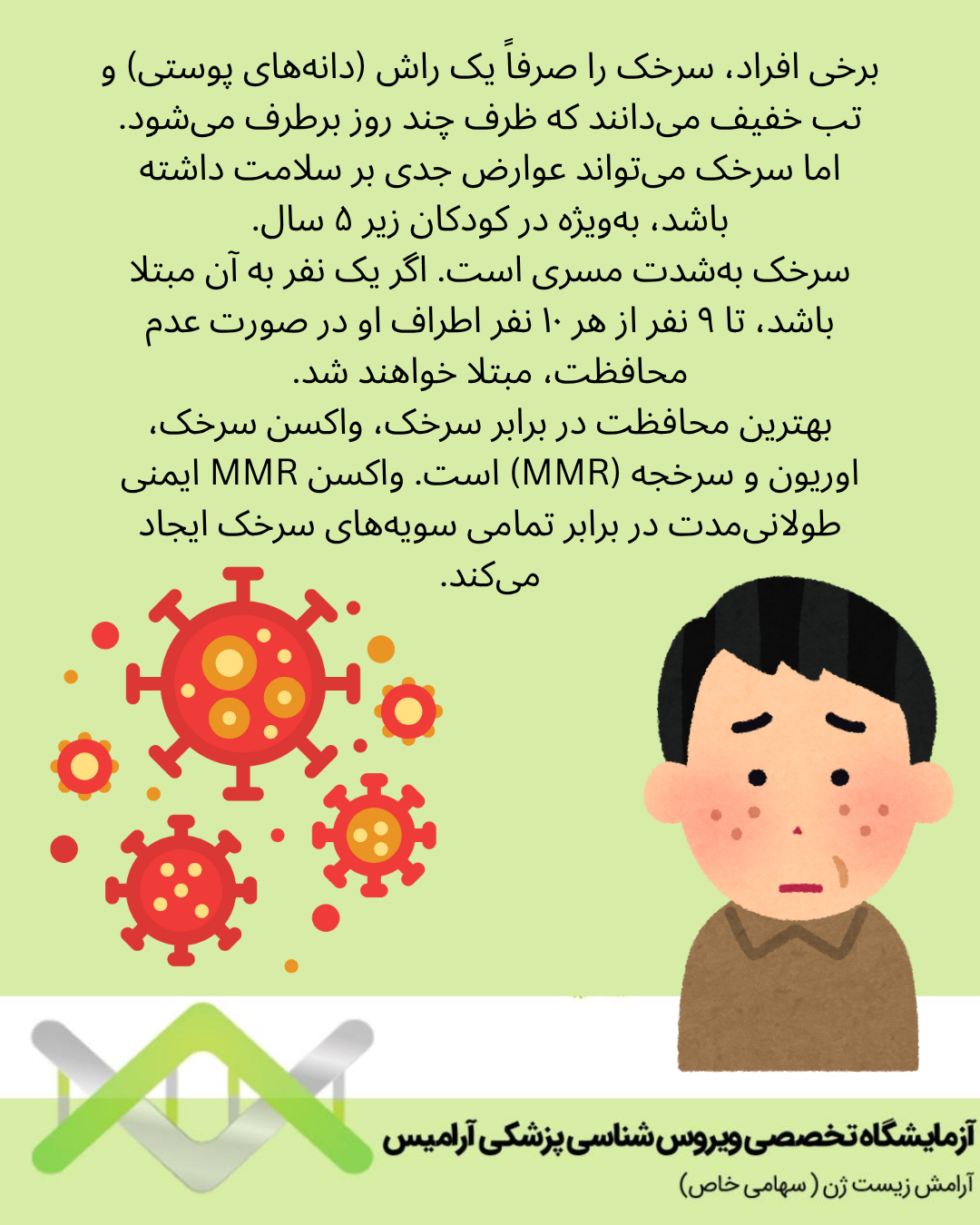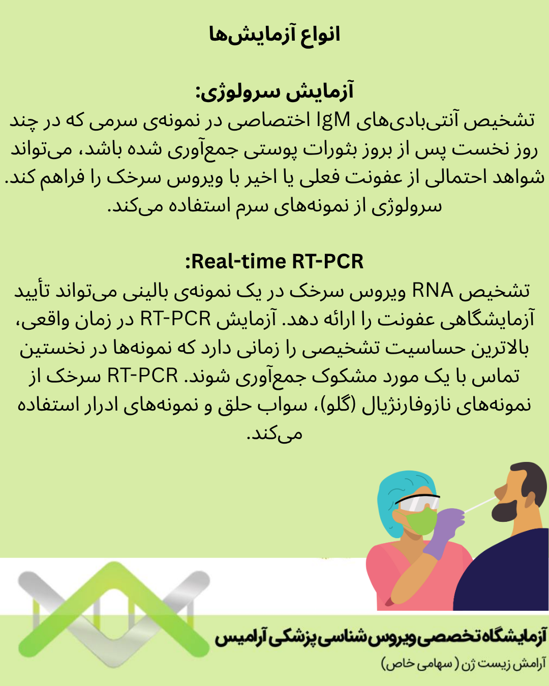 تشخیص RNA ویروس سرخک در یک نمونهی بالینی میتواند تأیید آزمایشگاهی عفونت را ارائه دهد.