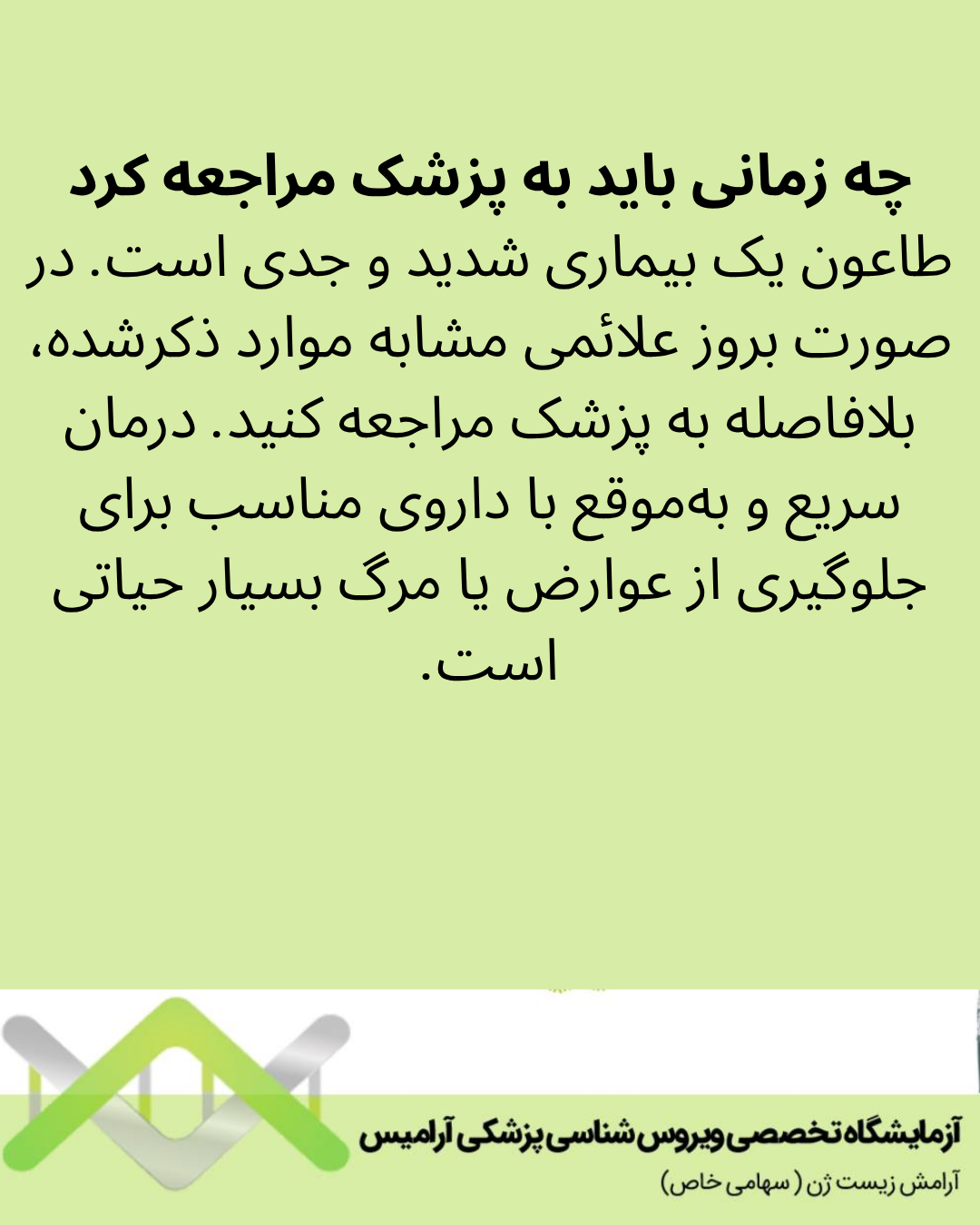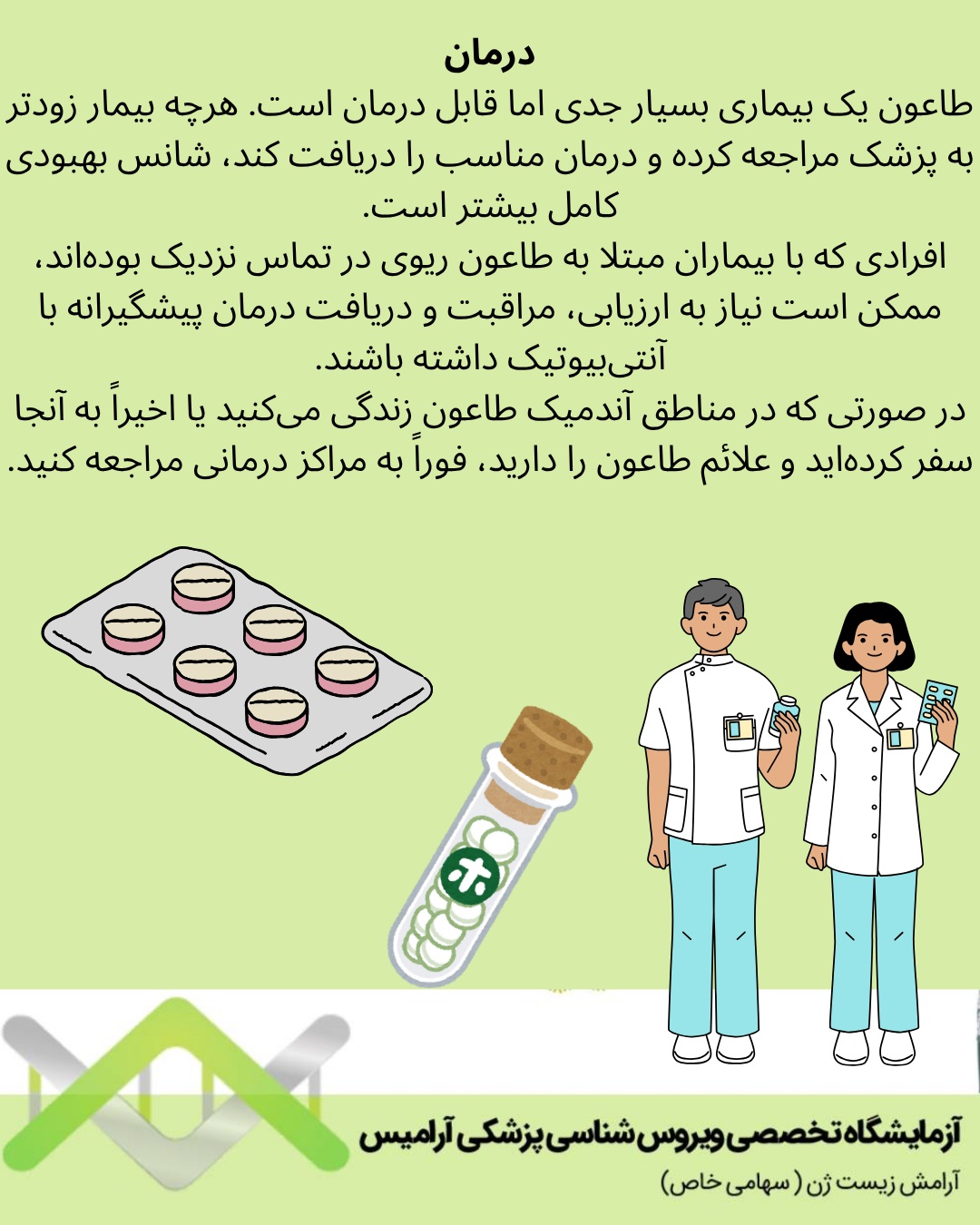 طاعون یک بیماری شدید و جدی است. در صورت بروز علائمی مشابه موارد ذکرشده، بلافاصله به پزشک مراجعه کنید. درمان سریع و بهموقع با داروی مناسب برای جلوگیری از عوارض یا مرگ بسیار حیاتی است.