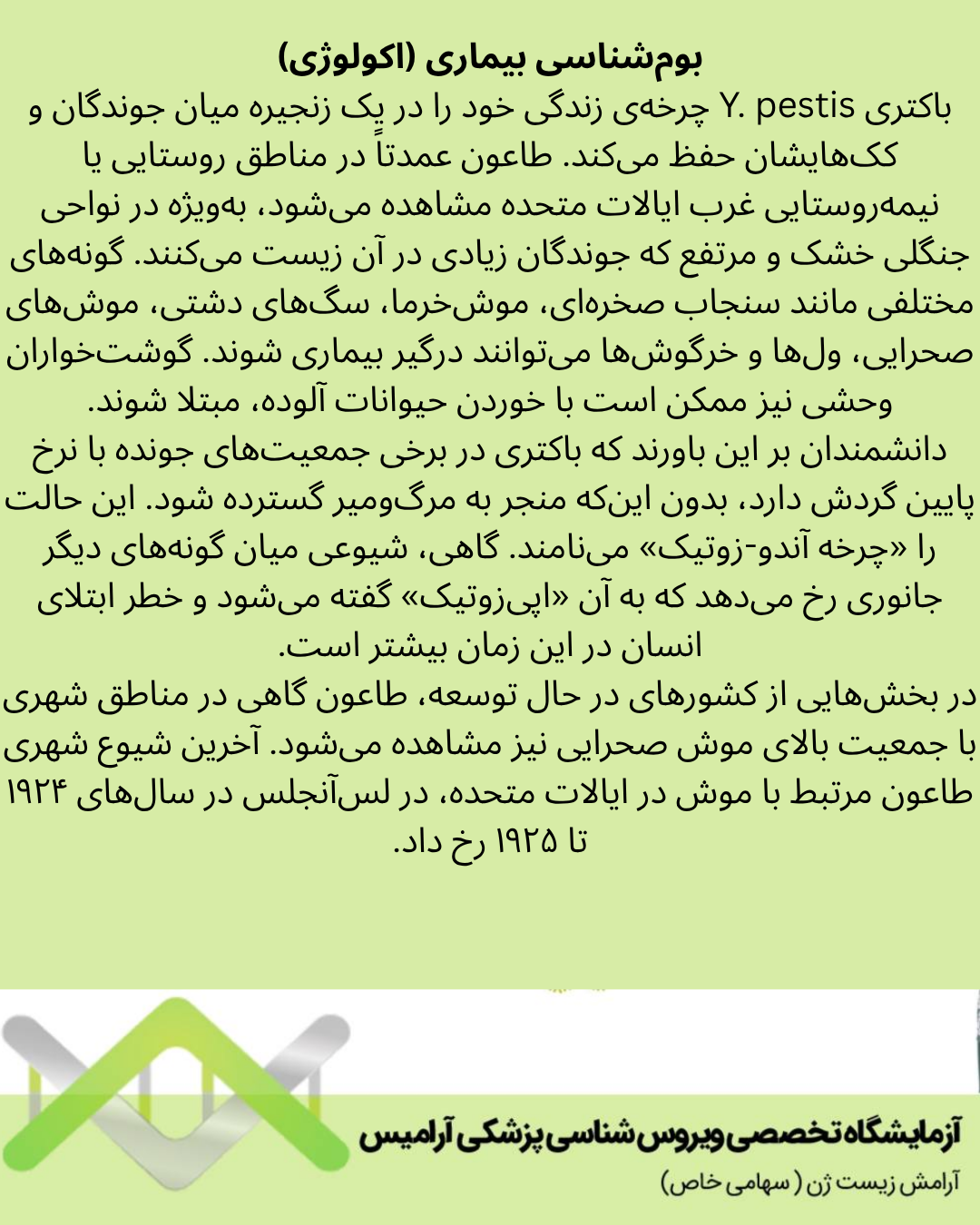 دانشمندان بر این باورند که باکتری در برخی جمعیتهای جونده با نرخ پایین گردش دارد، بدون اینکه منجر به مرگومیر گسترده شود. این حالت را «چرخه آندو-زوتیک» مینامند. گاهی، شیوعی میان گونههای دیگر جانوری رخ میدهد که به آن «اپیزوتیک» گفته میشود و خطر ابتلای انسان در این زمان بیشتر است.