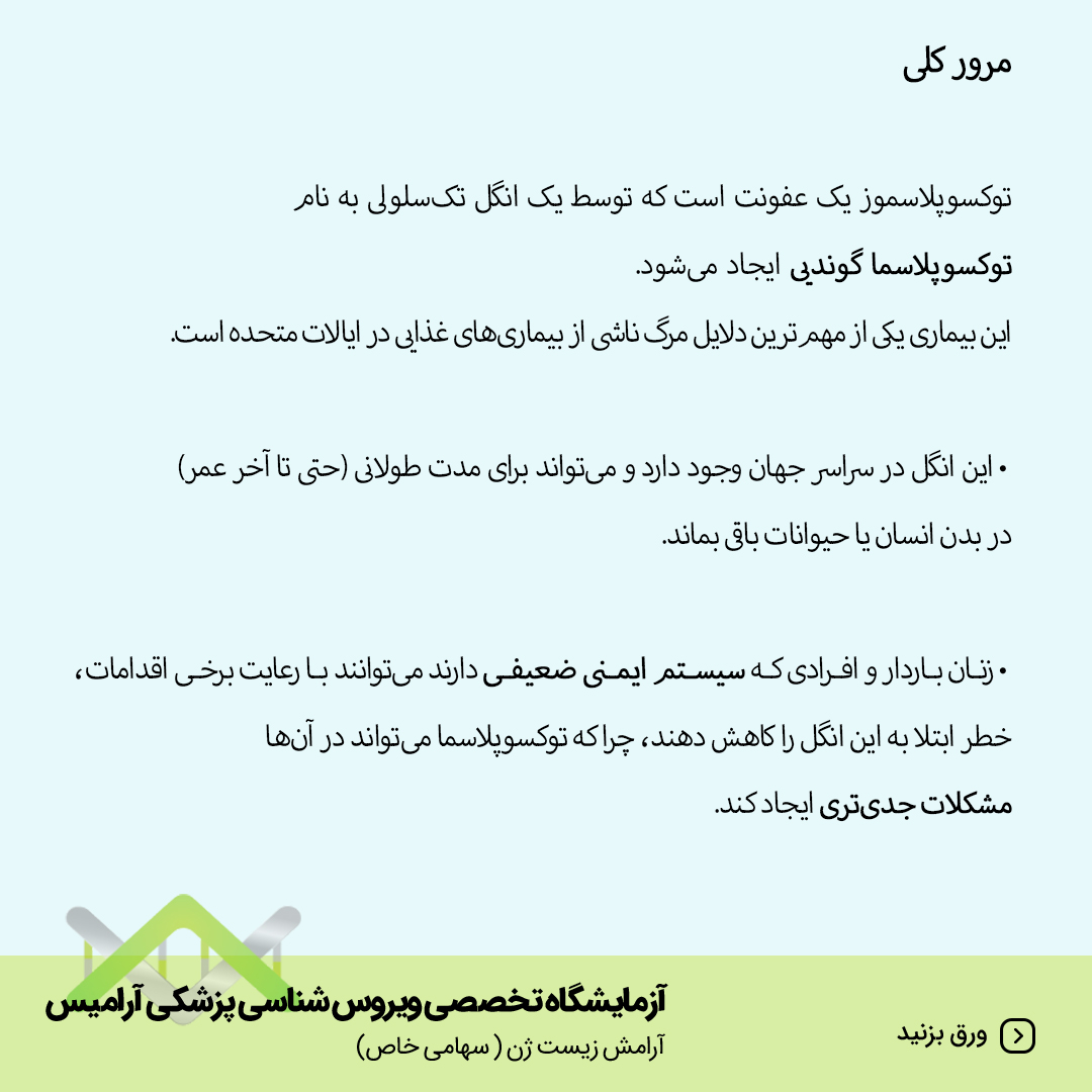توکسوپلاسموز یک عفونت است که توسط یک انگل تک سلولی به نام توکسوپلاسما گوندیی ایجاد میشود.
