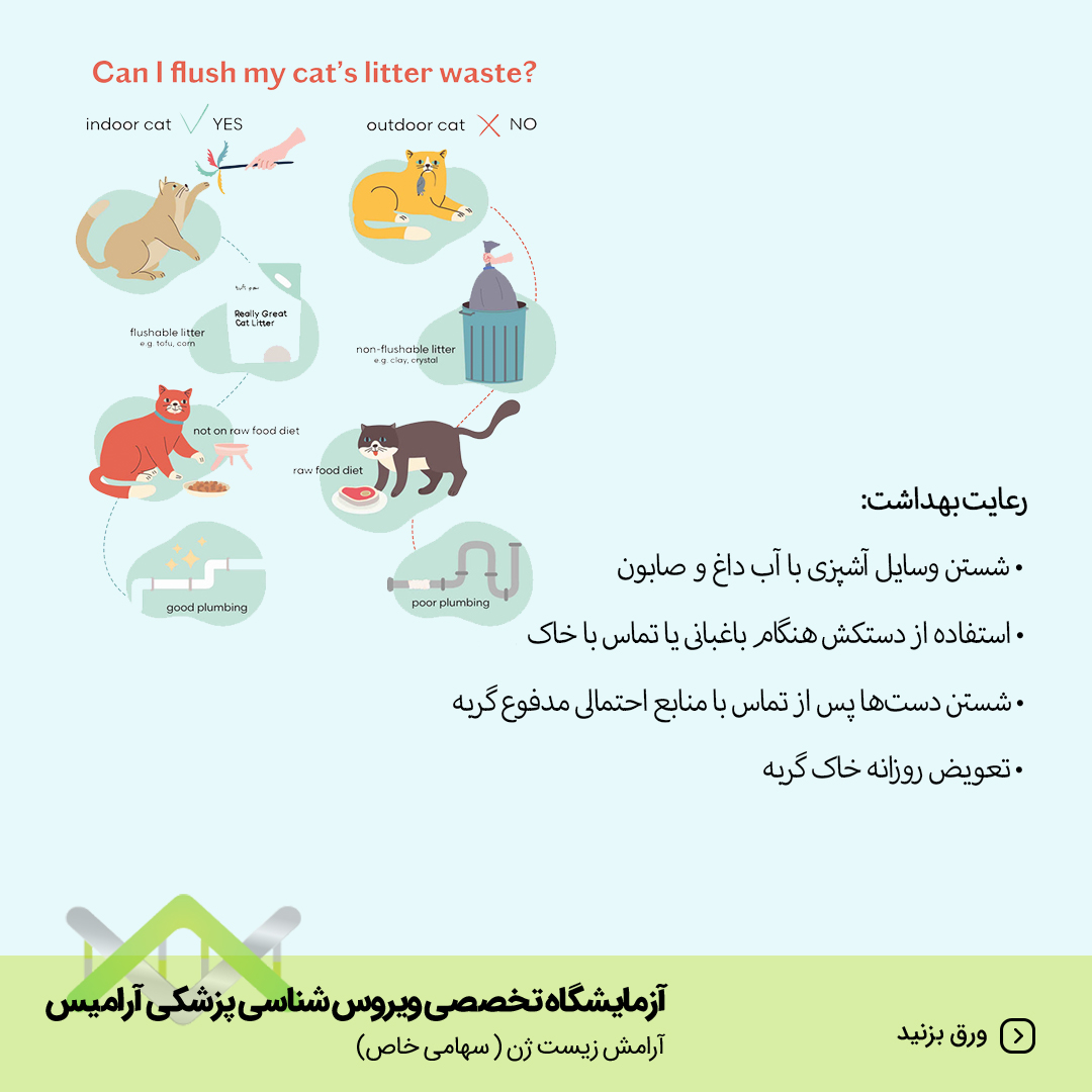 - شستن دست ها پس از تماس با منابع احتمالی مدفوع گربه