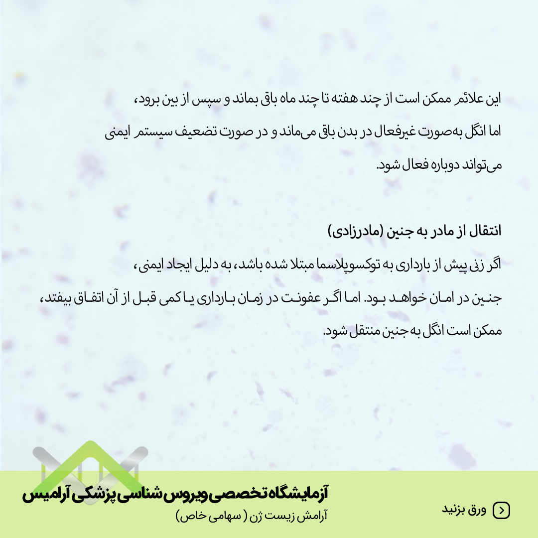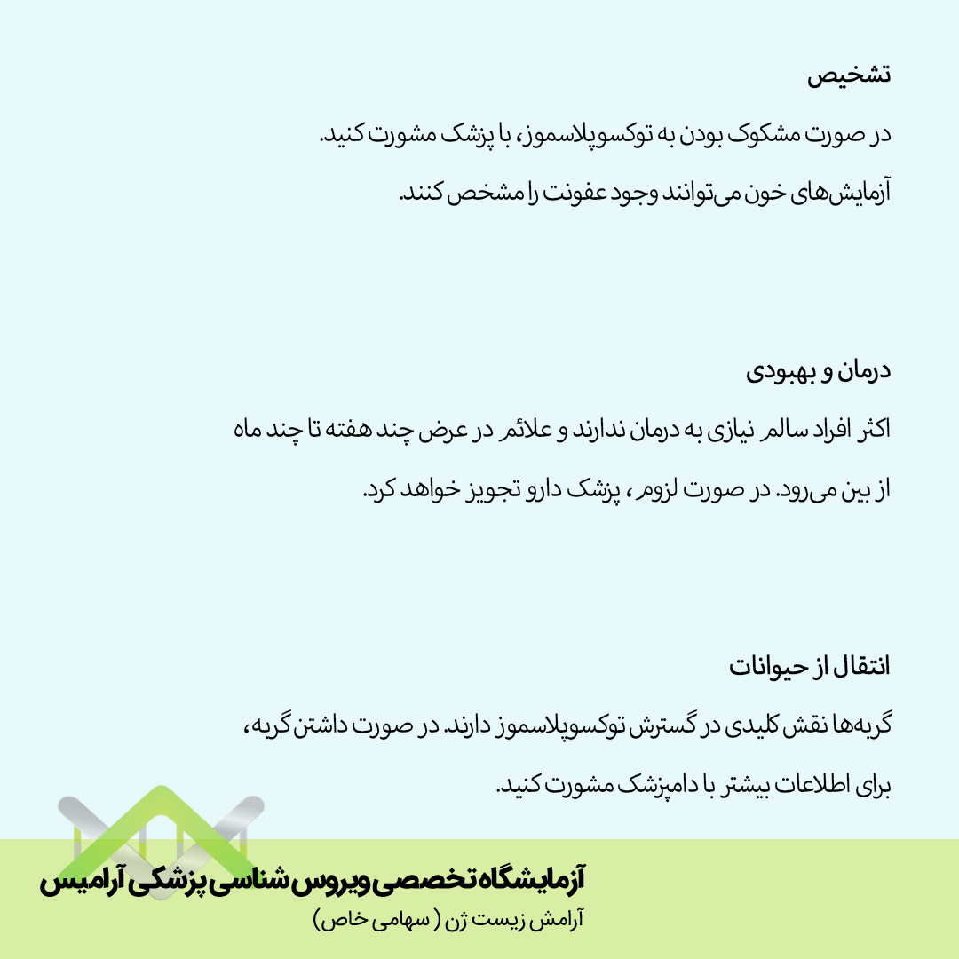 در صورت مشکوک بودن به توکسوپلاسموز با پزشک مشورت کنید.