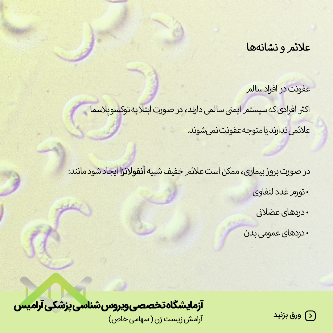 اکثر افرادی که سیستم ایمنی سالمی دارند در صورت ابتلا به توکسوپلاسما علائمی ندارند یا متوجه عفونت نمیشوند.