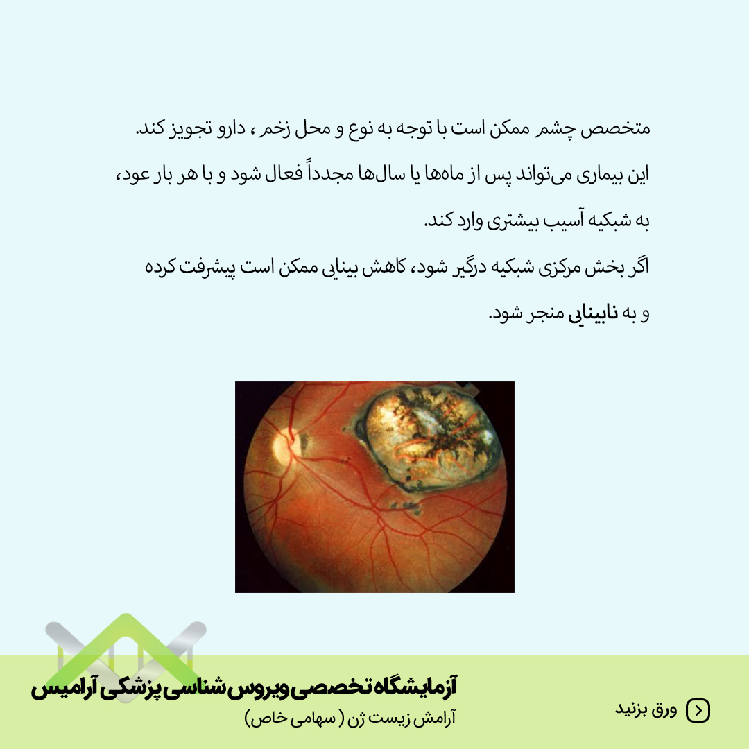 این بیماری میتواند پس از ماه ها یا سال ها مجدداً فعال شود و با هر بار عود به شبکیه آسیب بیشتری وارد کند.