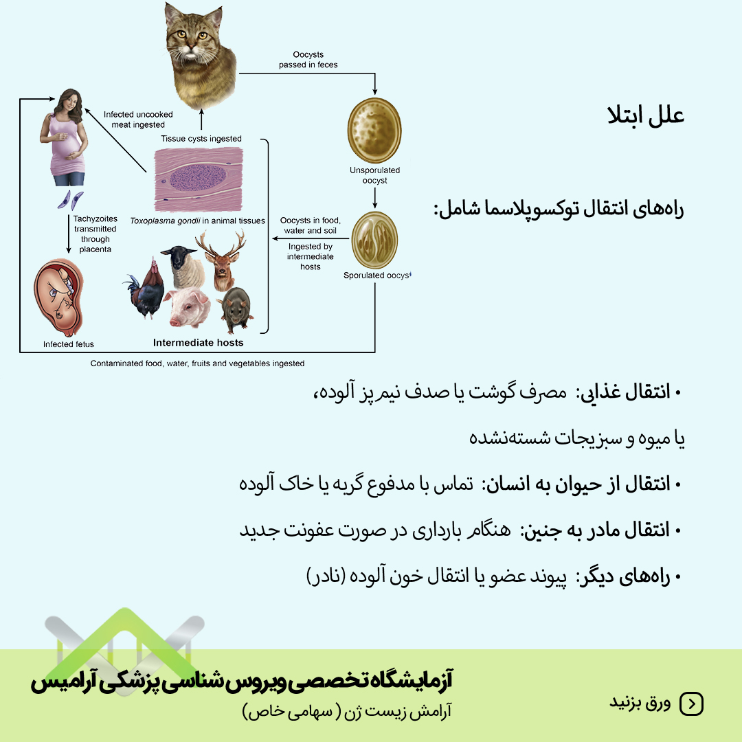 - انتقال از حیوان به انسان: تماس با مدفوع گربه یا خاک آلوده