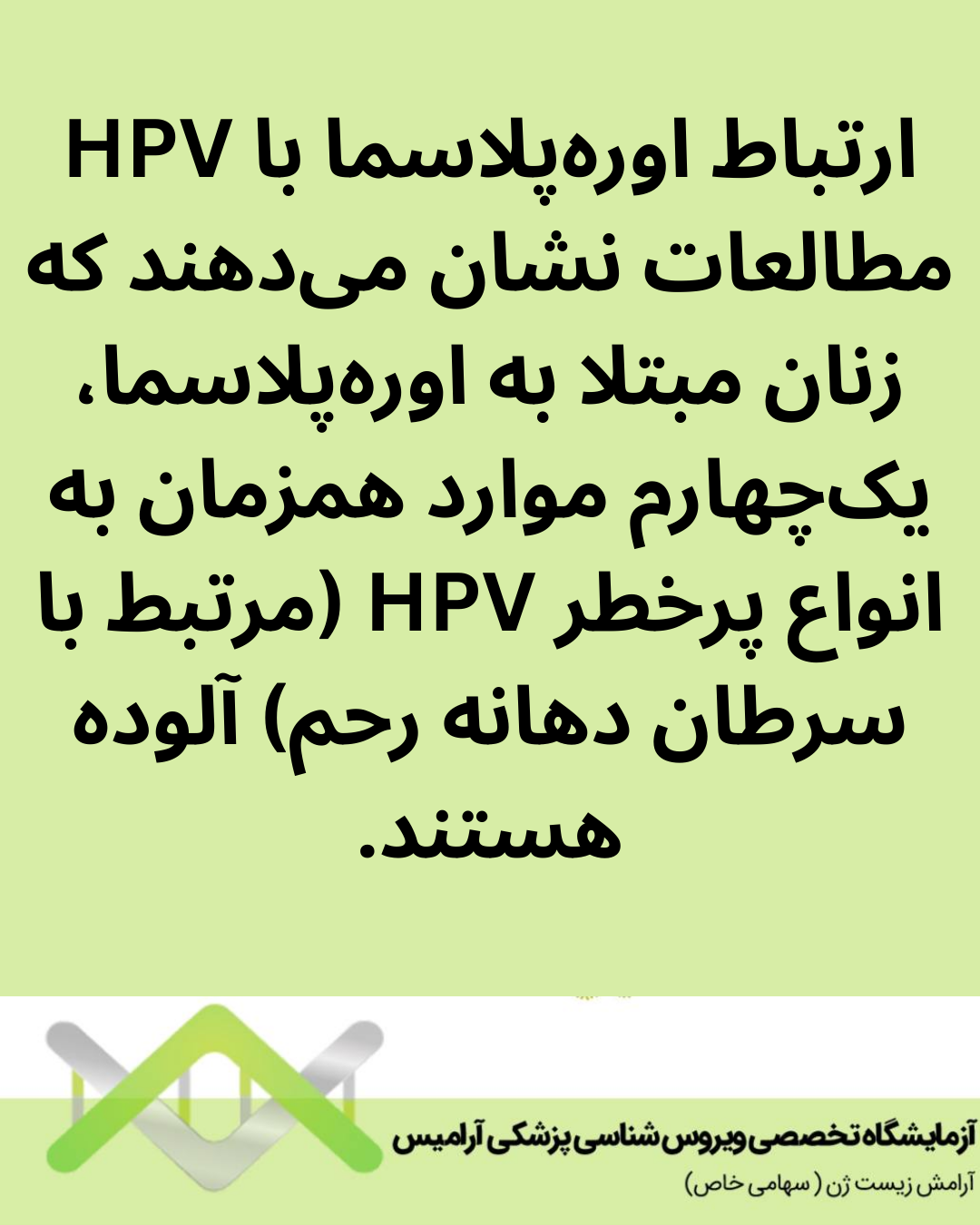 ارتباط اوره پلاسما با HPV مطالعات نشان میدهند که زنان مبتلا به اوره پلاسما، یک چهارم موارد همزمان به انواع پرخطر HPV (مرتبط با سرطان دهانه رحم) آلوده هستند.