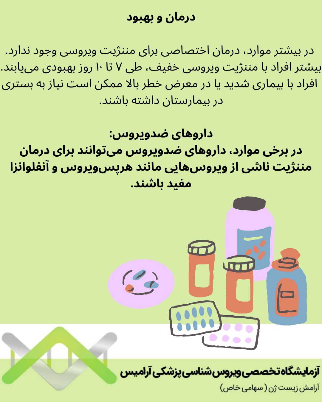 * در بیشتر موارد، درمان اختصاصی برای مننژیت ویروسی وجود ندارد.