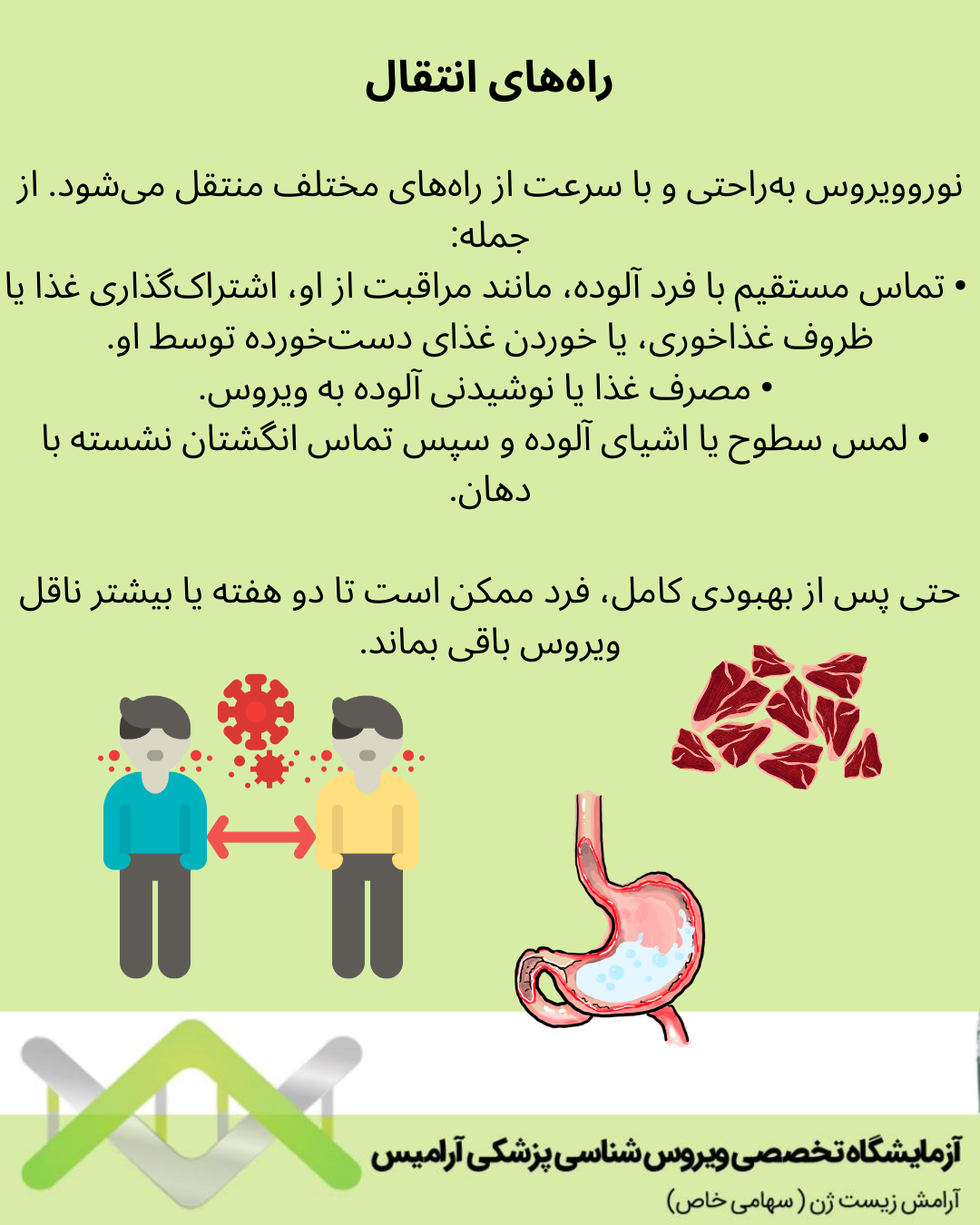 نوروویروس بهراحتی و با سرعت از راههای مختلف منتقل میشود. از جمله: