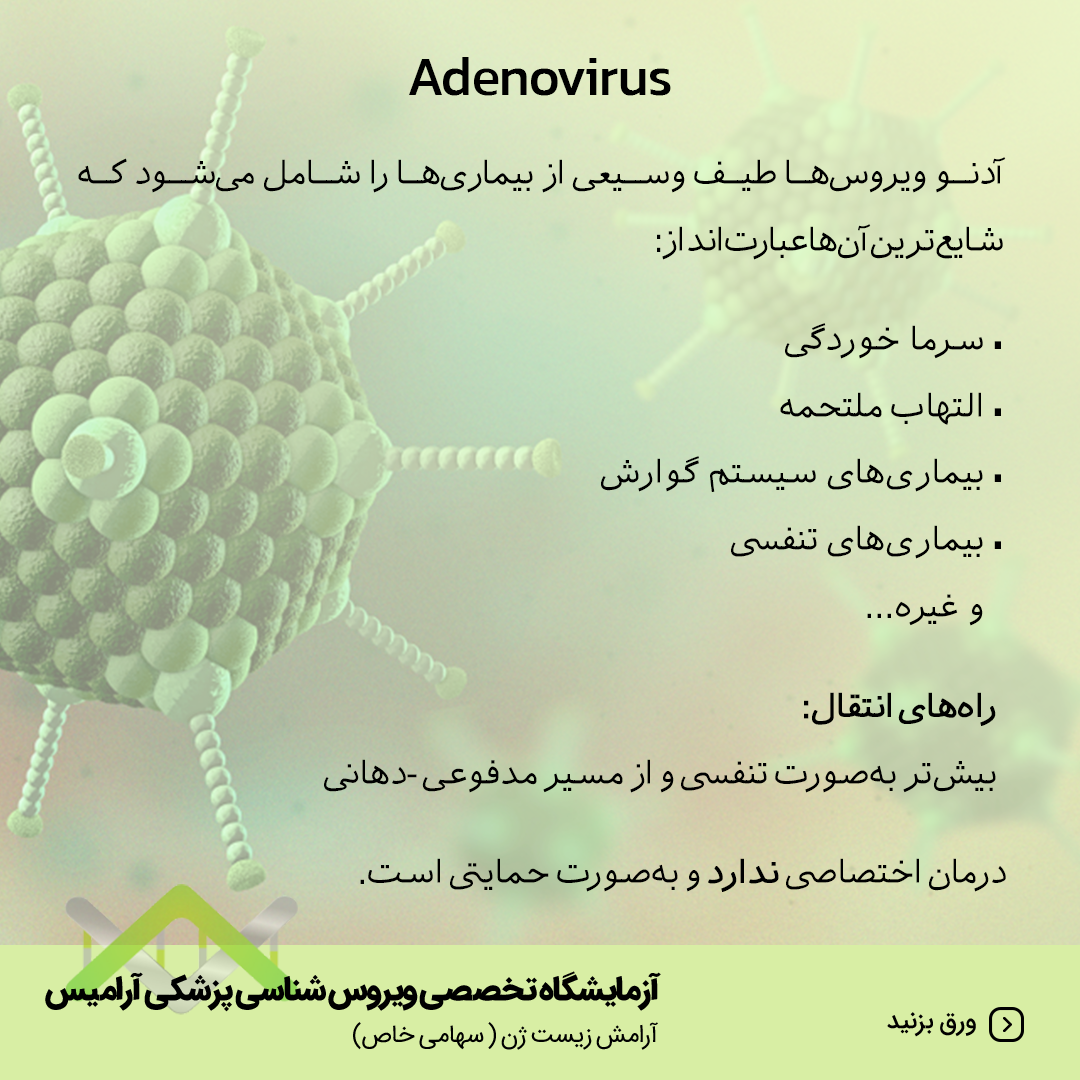 آدنو ویروس ها طیف وسیعی از بیماری ها را شامل می شود که شایع ترین آن ها عبارت اند از: