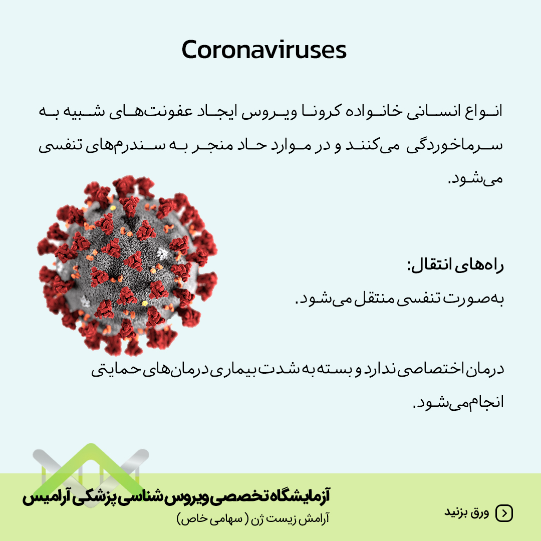 انواع انسانی خانواده کرونا ویروس ایجاد عفونت های شبیه به سرما خوردگی میکنند و در موارد حاد منجر به سندرم های تنفسی می شود.