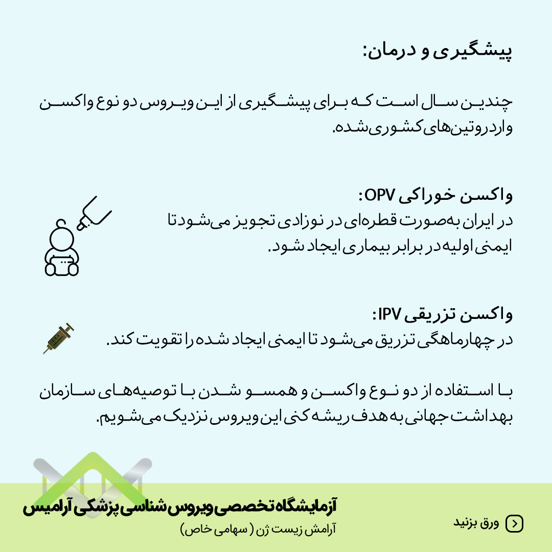 پیشگیری و درمان: چندین سال است که برای پیشگیری از این ویروس دو نوع واکسن وارد روتین های کشوری شده.