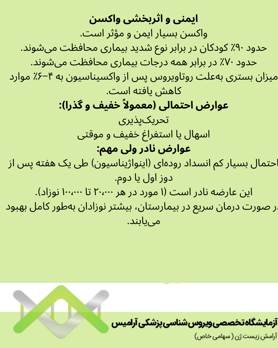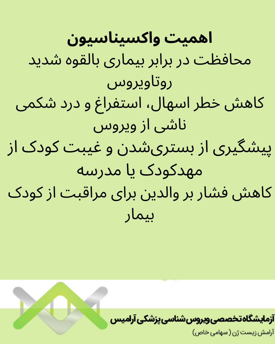 محافظت در برابر بیماری بالقوه شدید روتاویروس کاهش خطر اسهال، استفراغ و درد شکمی ناشی از ویروس پیشگیری از بستری شدن و غیبت کودک از مهد کودک یا مدرسه کاهش فشار بر والدین برای مراقبت از کودک بیمار.