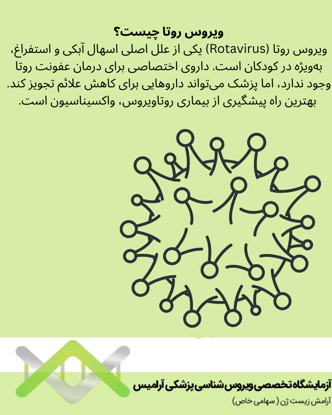 ویروس روتا (Rotavirus) یکی از علل اصلی اسهال آبکی و استفراغ به ویژه در کودکان است. داروی اختصاصی برای درمان عفونت روتا وجود ندارد اما پزشک میتواند داروهایی برای کاهش علائم تجویز کند.