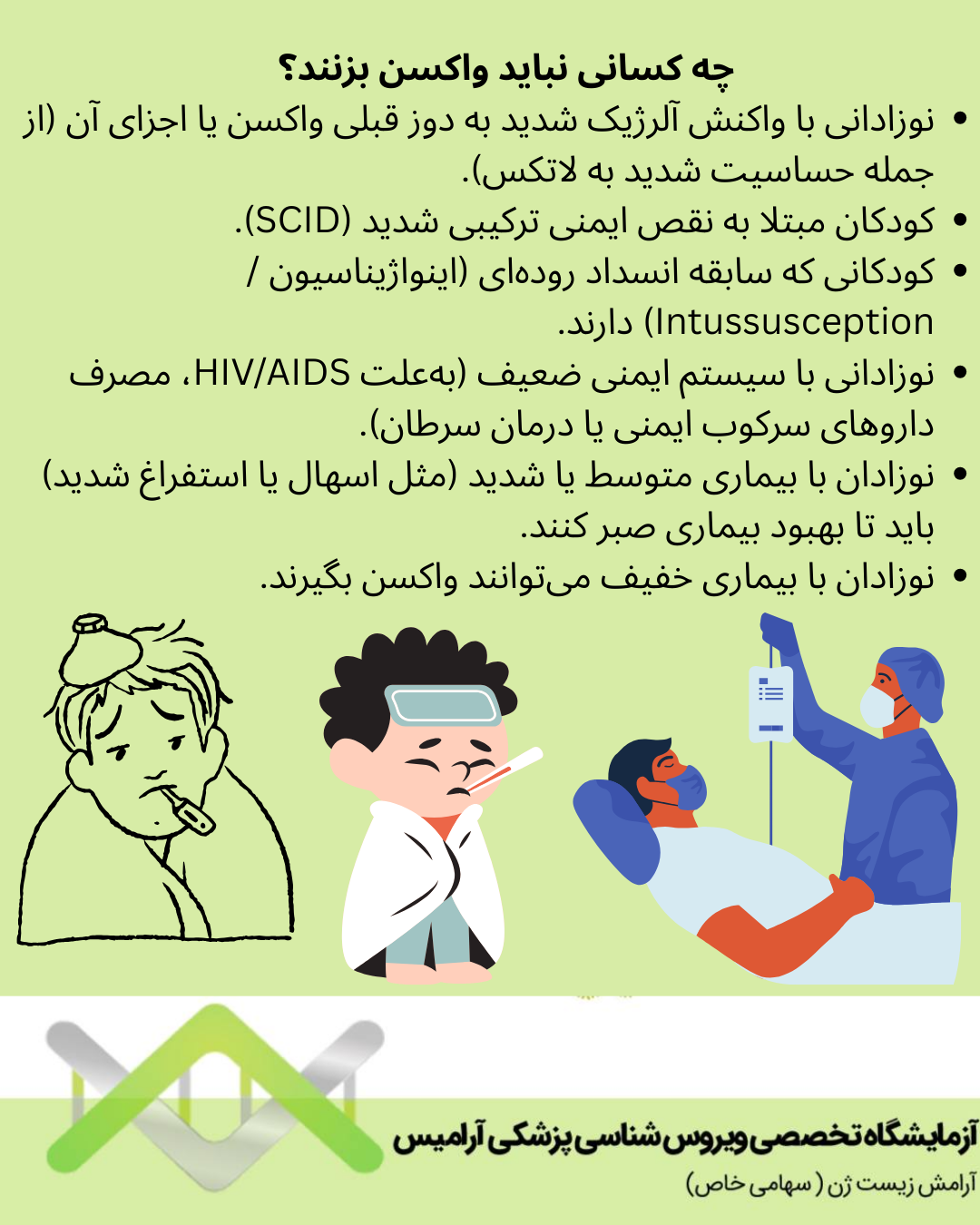 • نوزادانی با سیستم ایمنی ضعیف( به علت HIV/AIDS، مصرف داروهای سرکوب ایمنی یا درمان سرطان)