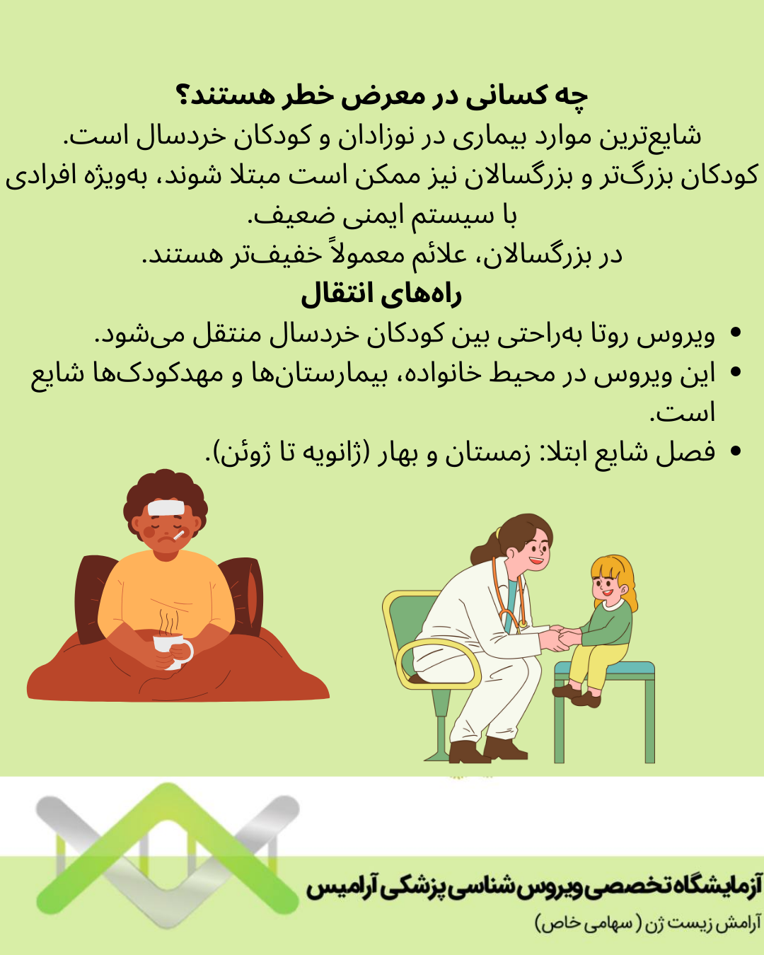 • ویروس روتا به راحتی بین کودکان خردسال منتقل میشود.