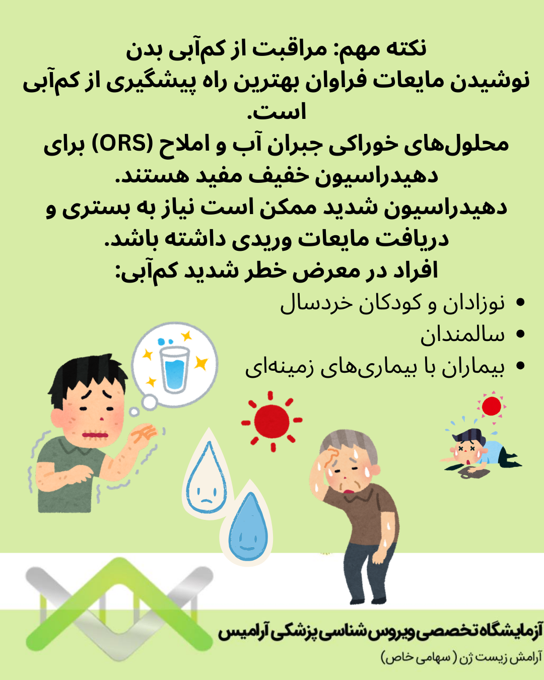 نکته مهم مراقبت از کم آبی بدن نوشیدن مایعات فراوان بهترین راه پیشگیری از کم آبی است.