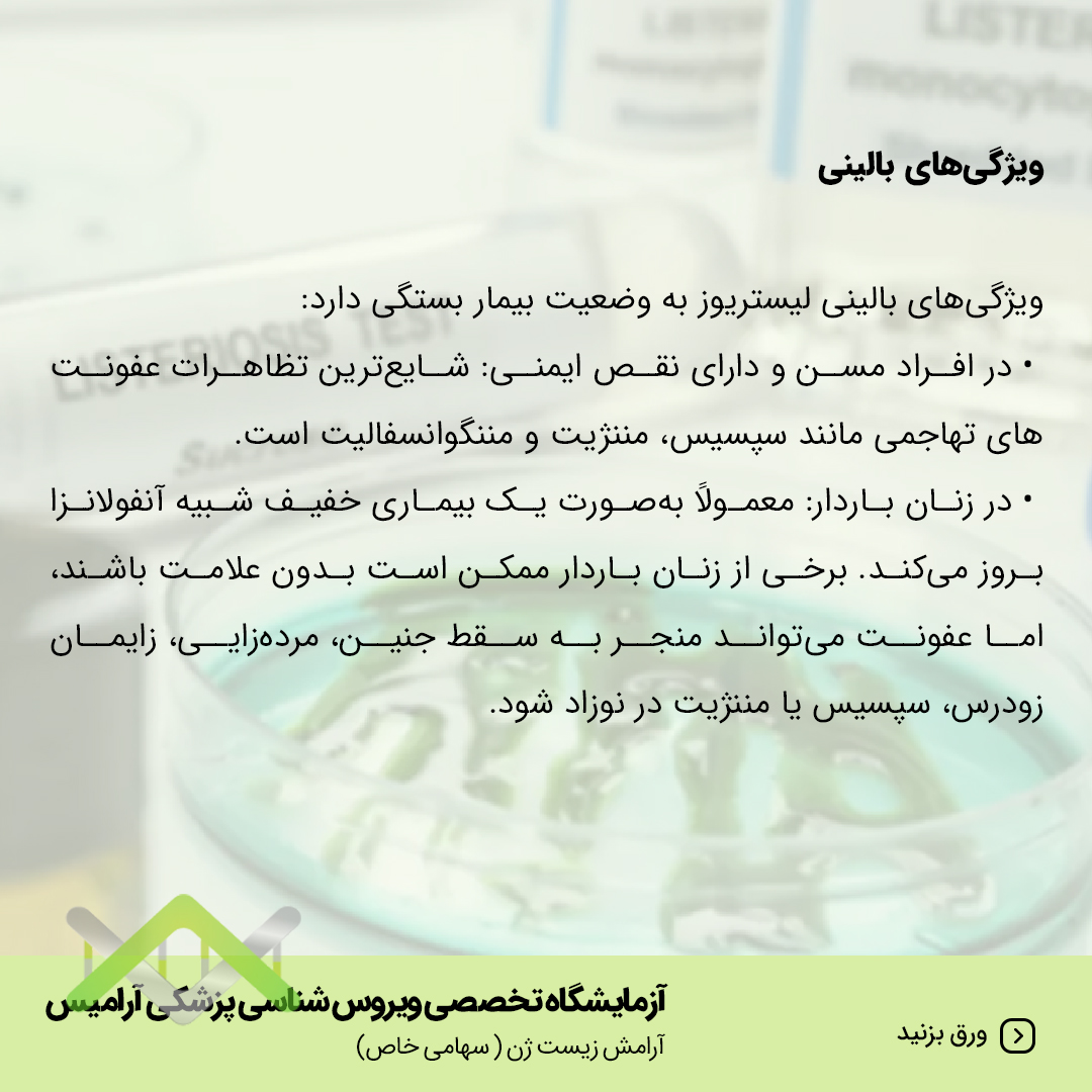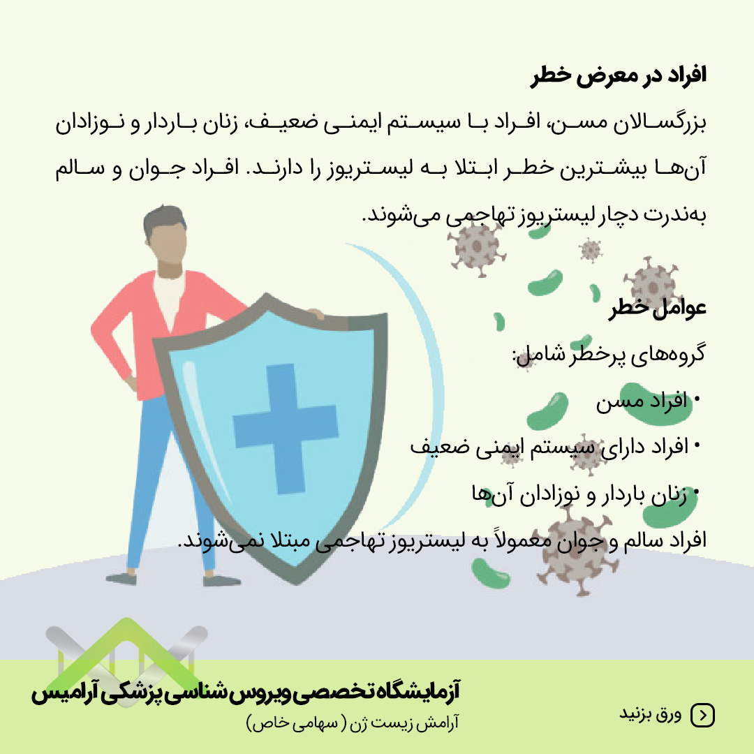 - افراد سالم و جوان معمولاً به لیستریوز تهاجمی مبتلا نمیشوند