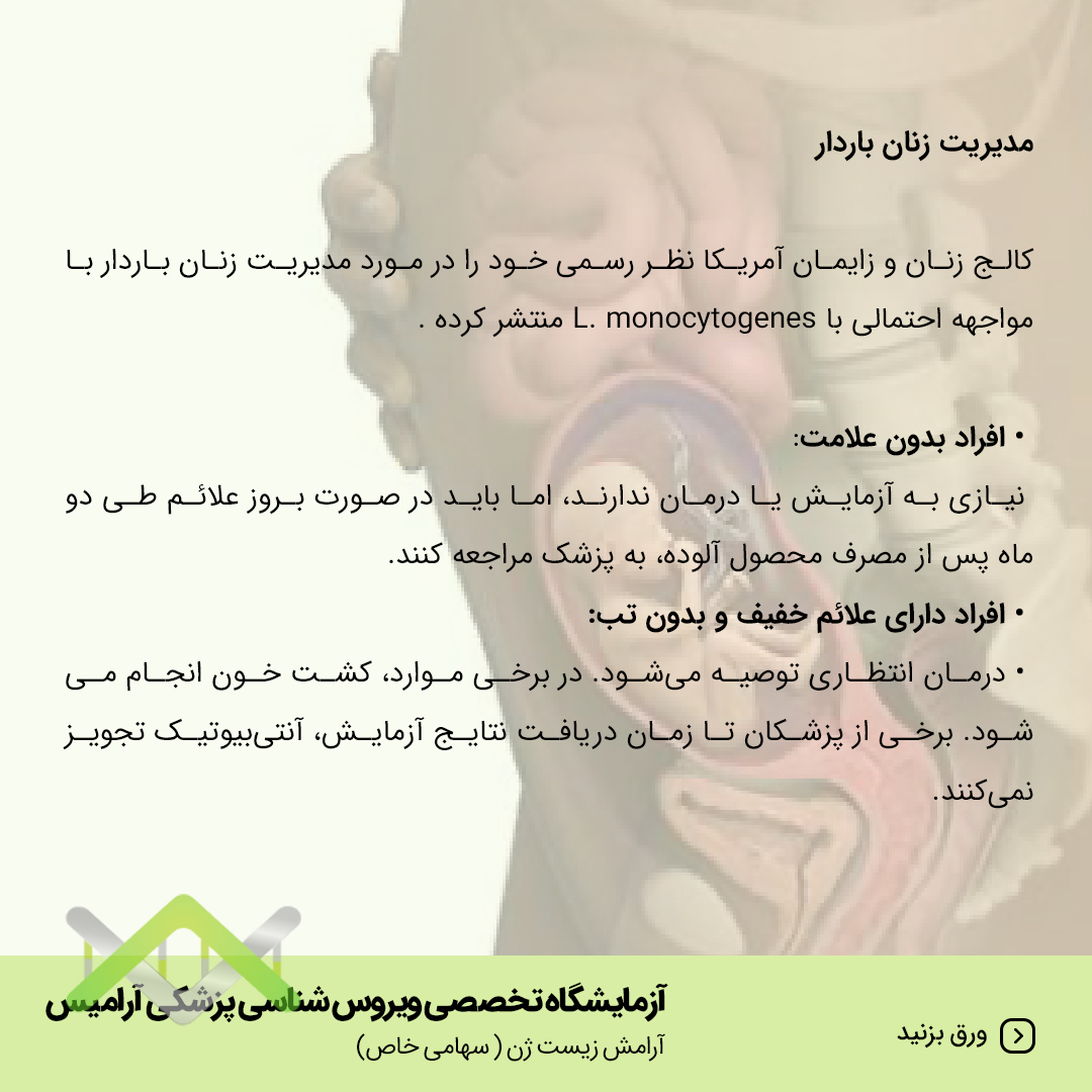 کالج زنان و زایمان آمریکا نظر رسمی خود را در مورد مدیریت زنان باردار با مواجهه احتمالی با L monocytogenes منتشر کرده.