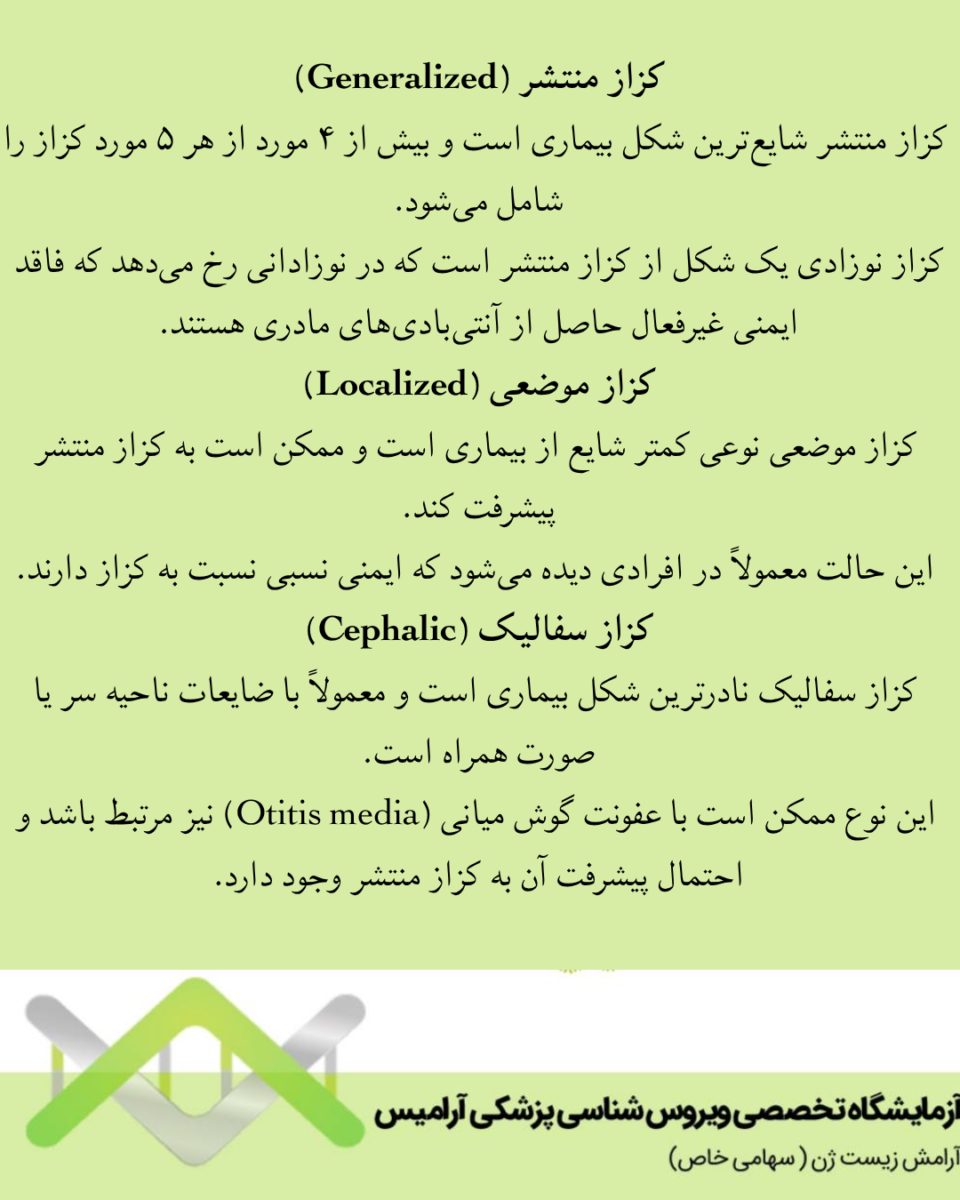 کزاز نوزادی: ۴ تا ۱۴ روز پس از تولد (میانگین حدود ۷ روز)