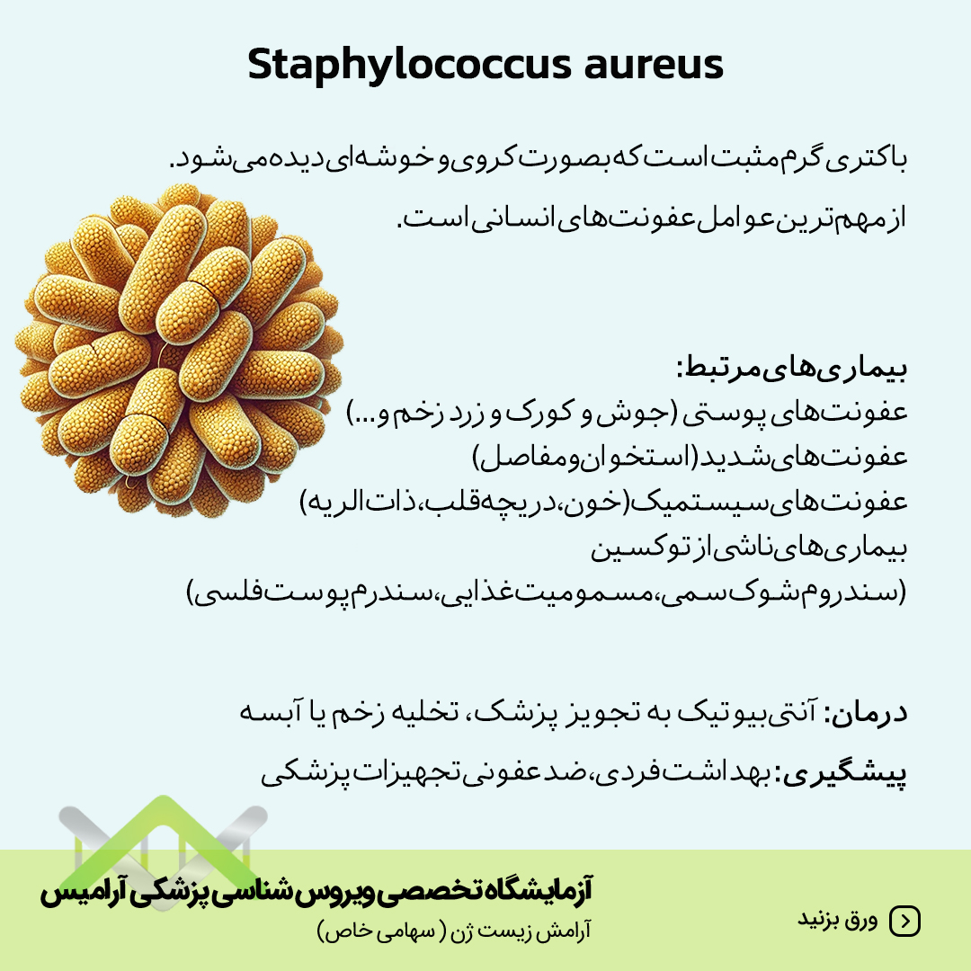 باکتری گرم مثبت است که بصورت کروی و خوشه ای دیده می شود. از مهم ترین عوامل عفونت های انسانی است.