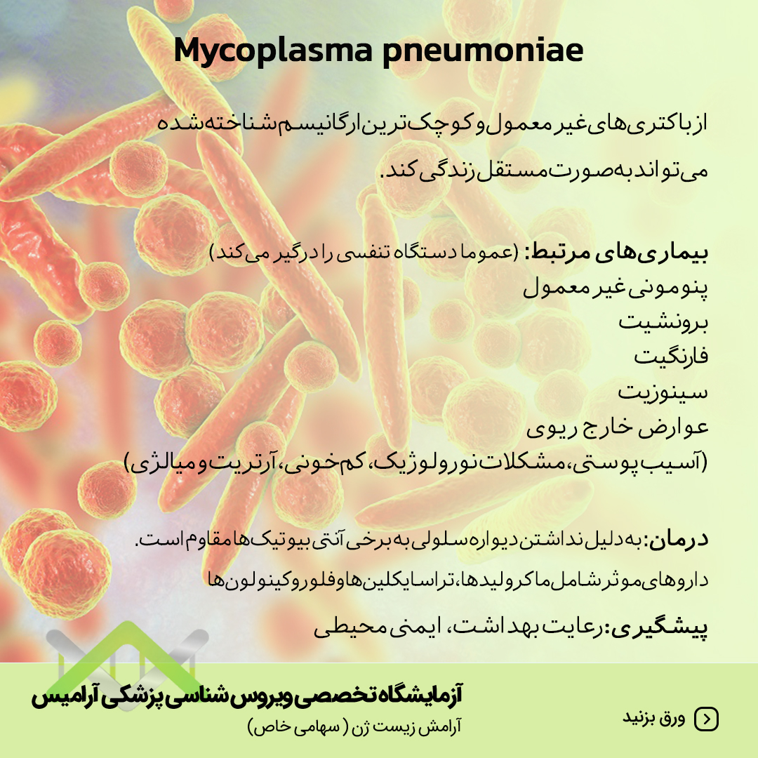 درمان: به دلیل نداشتن دیواره سلولی به برخی آنتی بیوتیک ها مقاوم است. داروهای موثر شامل ماکروئید ها، تراسایکلین ها و فلوروکینولون ها