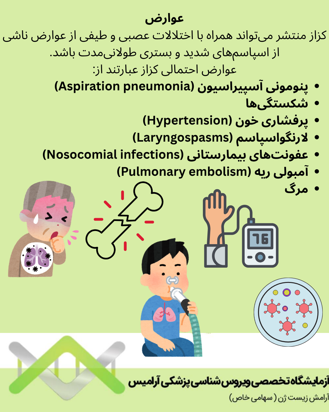 کزاز منتشر میتواند همراه با اختلالات عصبی و طیفی از عوارض ناشی از اسپاسمهای شدید و بستری طولانیمدت باشد.