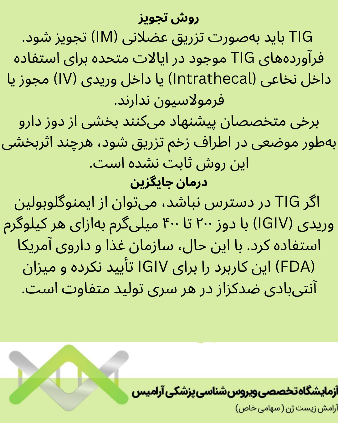 تجویز ایمنوگلوبولین کزاز (TIG)